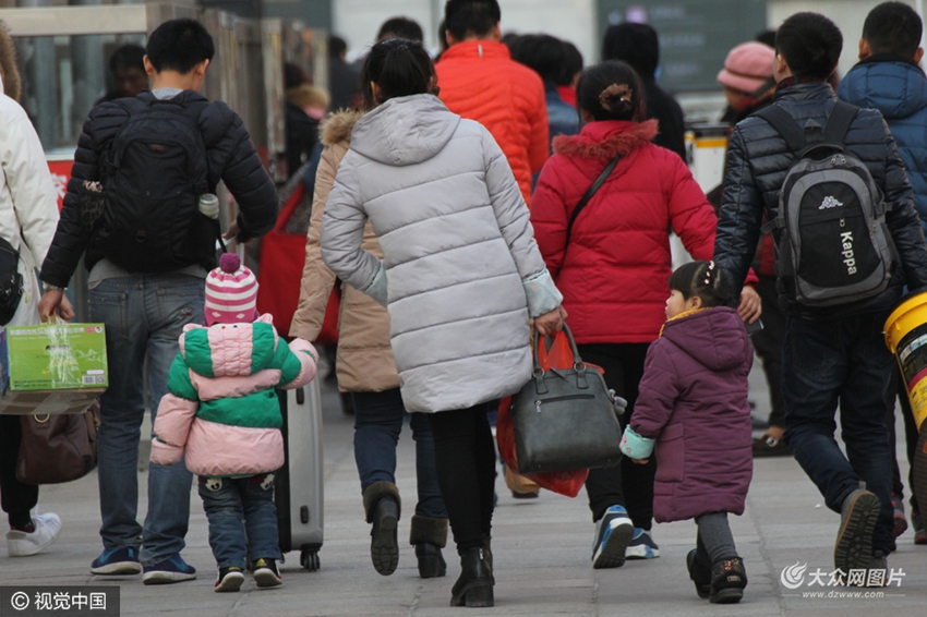 2017年01月17日,山東省青島市,“小候鳥”在青島火車站趕火車。
