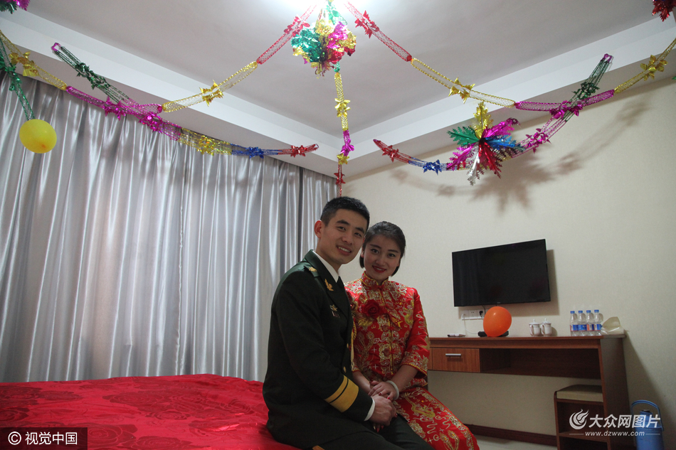 2017年1月14日,山東省煙臺市。一場特殊的婚禮在煙臺長島消防大隊舉行。這對新人均是消防官兵,新郎申恒龍是煙臺長島消防大隊縣府街中隊指導員,新娘武潔則是煙臺福山區消防大隊防火參謀,在經歷了多年的愛情長跑之后,終于修成正果,喜結連理。