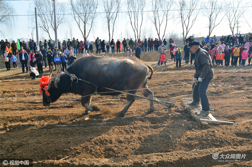 2017年2月26日,在山東省日照市嵐山區(qū)黃墩鎮(zhèn)雙疃社區(qū)上雙疃村,村民參加“二月二 鬧春牛”活動(dòng)。當(dāng)日是農(nóng)歷二月初一,山東省日照市嵐山區(qū)黃墩鎮(zhèn)雙疃社區(qū)上雙疃村舉行傳統(tǒng)的“二月二,鬧春牛”活動(dòng),迎接傳統(tǒng)的“龍?zhí)ь^日”,10多戶村民帶著自家的牛參賽,祈求一年風(fēng)調(diào)雨順、五谷豐登。