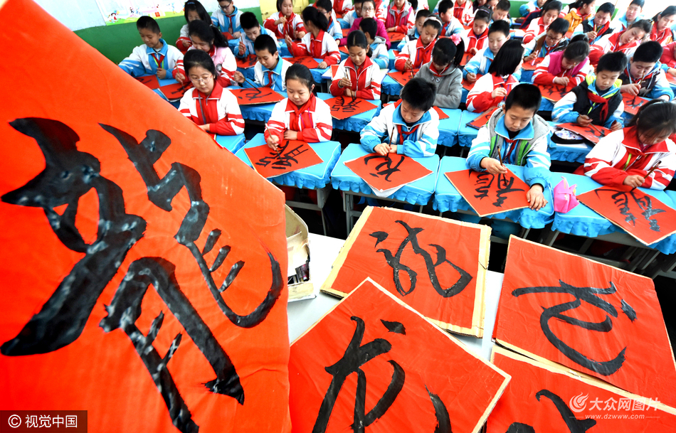 沂源:小學生書寫“龍” 字迎接龍抬頭 (/4)