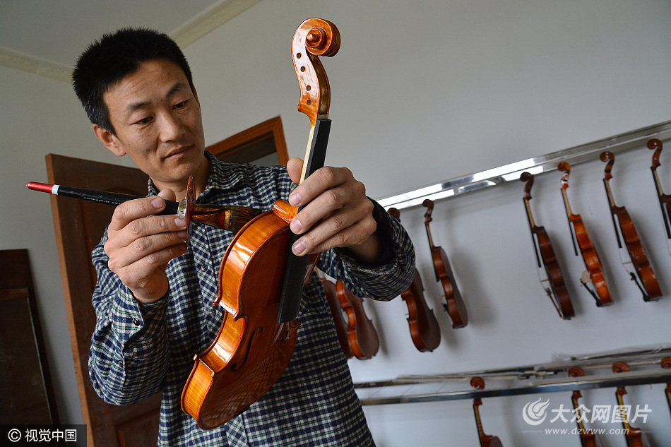 2017年4月5日,山東日照,今年41歲的丁波,是濤雒鎮(zhèn)苗家村一名普通的村民,他也是國家二級提琴制作師。現(xiàn)在,他手工制作的提琴,除在本地銷售外,還遠(yuǎn)銷濟南、青島、上海,以及新加坡和日本。