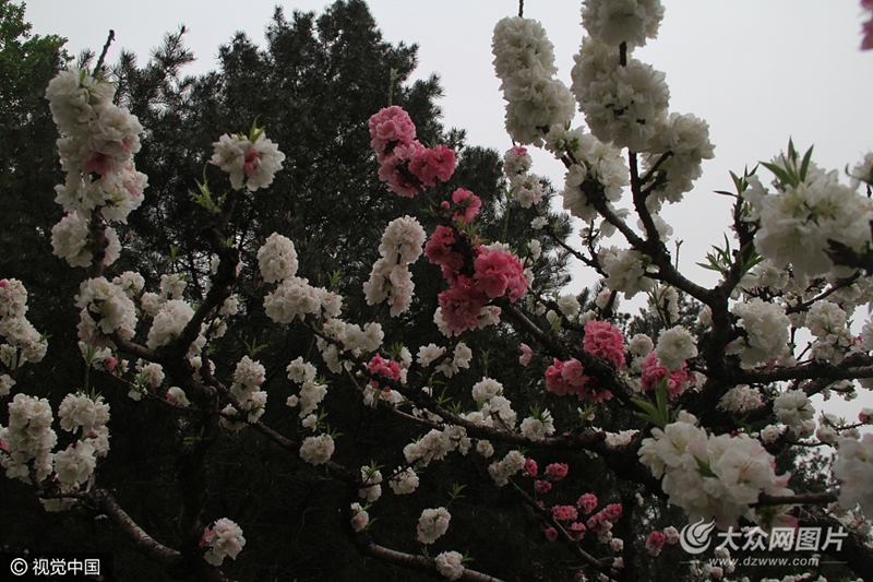 2017年4月10日,在山東濟(jì)南百花公園景區(qū)內(nèi),近百株榆葉梅競(jìng)相綻放,招引眾多市民游客前來踏青遨游花海,令人流連忘返的美景吸引不少路人拍照留念。