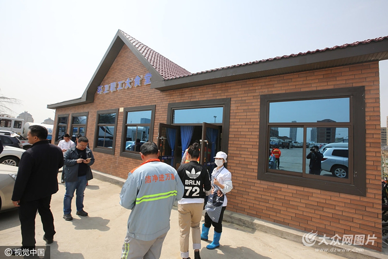 2017年4月11日,山東省青島市,2-4元即可讓風吹日曬堅守一線的環(huán)衛(wèi)工人吃頓葷素搭配的豐盛午餐,成為李滄區(qū)街頭巷尾的美談。據了解,為解決城市美容師在戶外用餐問題,李滄區(qū)共投入85.85萬元建設三座環(huán)衛(wèi)工人食堂,環(huán)衛(wèi)工人每天只需繳納2-4元的餐費,就可以在食堂享受6-10元的標準午餐,讓一天勞作在大街小巷的環(huán)衛(wèi)工人在午餐時間有個干凈整潔的就餐環(huán)境和一份菜、飯、粥、湯俱全的低價午餐。
