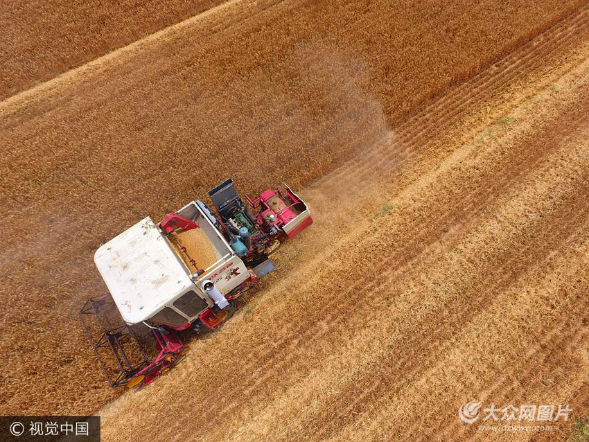 5月29日,聊城市茌平縣75萬畝小麥相繼進入成熟收獲期,當地村民忙著收獲小麥,確保夏糧顆粒歸倉。據農業部統計,截至5月26日17時,全國已收獲小麥3453萬畝,當日機收面積373萬畝,標志著全國“三夏”大規模小麥跨區機收大會戰全面啟動。“三夏”農時緊,今年全國將有1450萬臺農業機械投入小麥搶收、秸稈處理及玉米、水稻搶種作業,其中聯合收割機62萬臺,冬小麥機收率、夏玉米機播率預計分別超過93%、81%。
