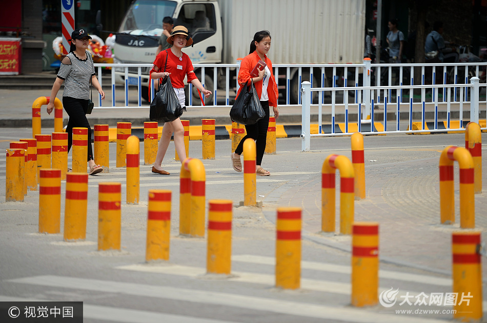2017年6月12日,山東省濟南市,順河新區(qū)的聚賢街和北坦南街,原來道路兩側占道經(jīng)營的攤位全部取締,路面重新噴畫交通標志線,并安裝了長約400米的隔離護欄,機動車和非機動車分道行駛,有效緩解占道經(jīng)營造成的道路擁堵。