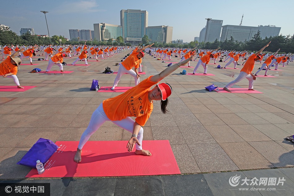 當日,一場“千人瑜伽會”在山東省濰坊市人民廣場舉行,1200多名瑜伽愛好者齊聚一堂,以共同練習(xí)瑜伽、倡導(dǎo)綠色健康生活的方式。