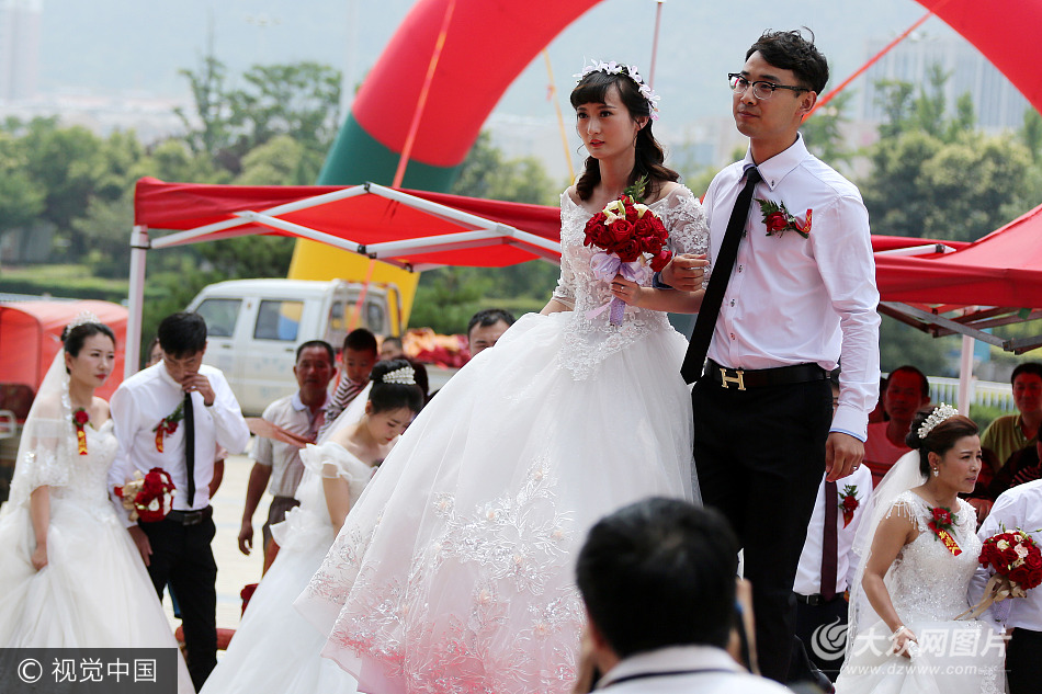 2017年6月25日,山東省棗莊市舉辦公益性集體婚禮。8對新人通過網上自愿報名,相約參加集體婚禮,移風易俗,以實際行動倡導文明節儉新風尚。