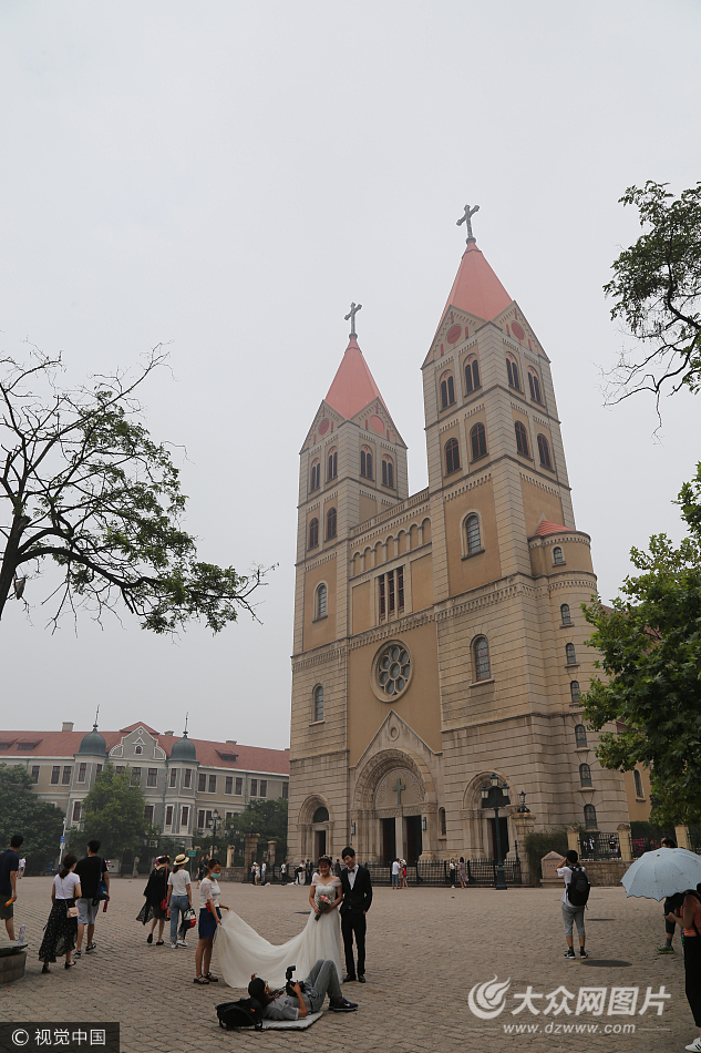2017年7月6日,山東青島,德國人于1934年建成的圣彌厄爾教堂(青島天主教堂)。
