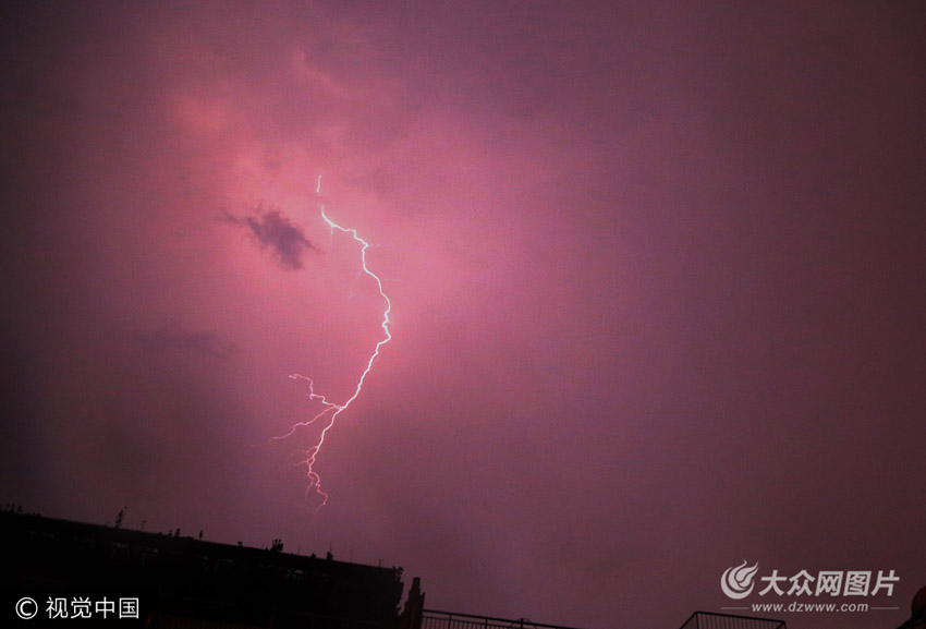 8月6日晚上,在濟南歷下區按察司街上空,雷雨交加,電閃雷鳴,一道道閃電劃破濟南的夜空,轉瞬即逝。當晚濟南市氣象局發布雷電黃色預警信號。