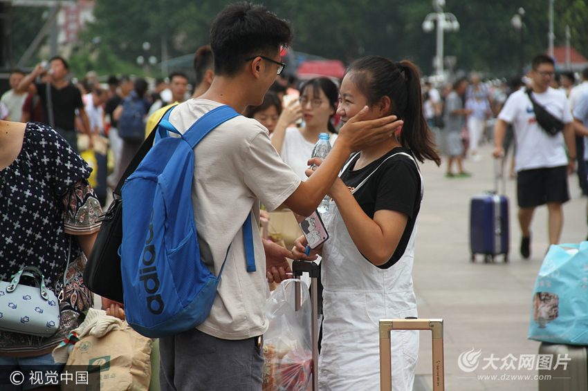 8月25日,開學季來臨,在濟南火車站出站口,又現大學生“情侶相會”時,或相逢,或離別。