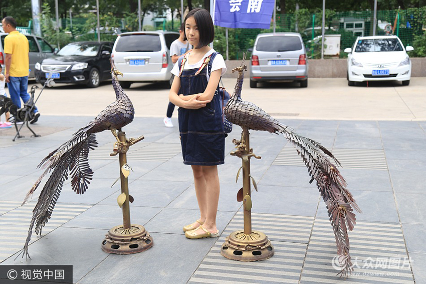 8月25日,在濟南第五屆藝術品博覽會上,一些用汽車、機械廢舊零件經過重新焊接等技術,讓原來廢舊的零件變費為寶,重塑藝術吸引市民駐足合影拍照。