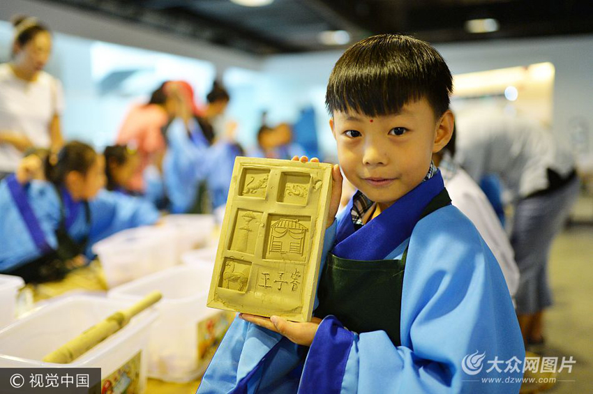 8月28日,山東省青島市同安路小學(xué)開(kāi)學(xué)首日,部分新生身著漢服來(lái)到市北區(qū)漢畫(huà)像磚博物館開(kāi)始了他們?nèi)雽W(xué)的第一課,聽(tīng)講解員介紹漢文化傳統(tǒng)的由來(lái),并親手學(xué)習(xí)制作漢畫(huà)像磚的技藝,體會(huì)5000多年的中華文明史,從中領(lǐng)會(huì)中華文化的價(jià)值精髓,增強(qiáng)民族自豪感。