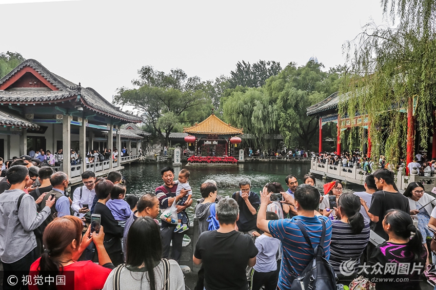 2017年10月1日,濟(jì)南,眾多游人爭(zhēng)相目睹有著“天下第一泉”美譽(yù)的趵突泉。