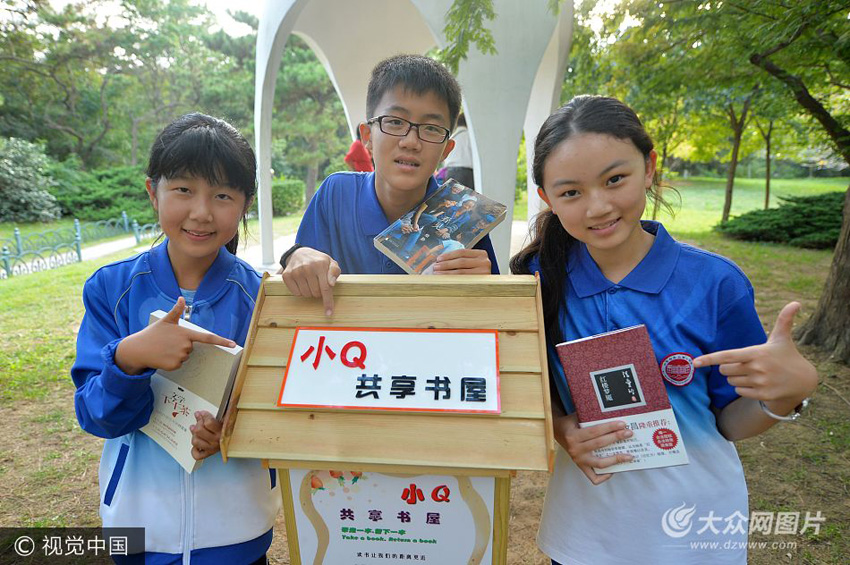 青島市四名中學生志愿者通過集體創意制作,于近期在中山公園櫻花大道以及八大關公主樓附近投放了5處不同造型的“小Q共享書屋”,受到市民的喜愛。