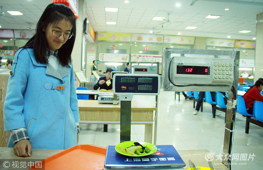 一名特別愛吃素材的女生選了2兩多素菜,稱重后價格顯示為1.32元。如果再買3兩米飯,她一頓飯的總價僅花了1.62元。