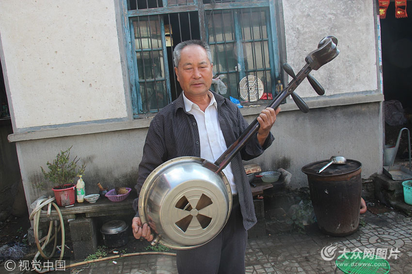 臨沂市蒙陰縣垛莊鎮(zhèn),69歲農(nóng)民劉長營用廢舊物品做樂器,并獲得國家專利。自主研制十余種各式各樣的“樂器”其中,用大鐵盆制作的貌似大提琴的弦樂器還獲得了國家專利發(fā)明獎(jiǎng)。劉長營現(xiàn)為垛莊夢想藝術(shù)團(tuán)的一員,這個(gè)團(tuán)隊(duì)的其他四人王現(xiàn)勇、王現(xiàn)順、王現(xiàn)居、張玉貴也是地地道道的農(nóng)民,他們平均年齡67歲,因?yàn)榭釔鬯囆g(shù),平時(shí)農(nóng)忙之余便相約一起吹拉彈唱。他們團(tuán)隊(duì)經(jīng)常用劉長營發(fā)明的二胡、板胡、小提琴、等七八種樂器一起演奏各類曲目。