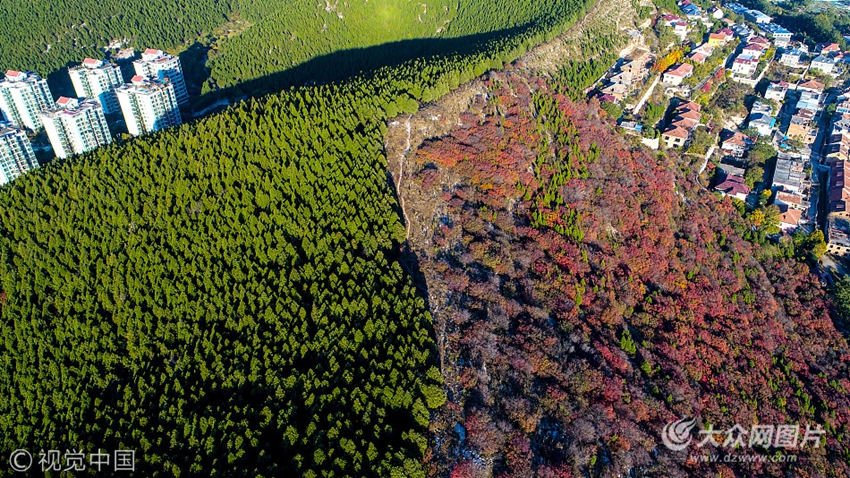 濟南:半山青松半山紅 俯瞰如同“一刀切” (/7)