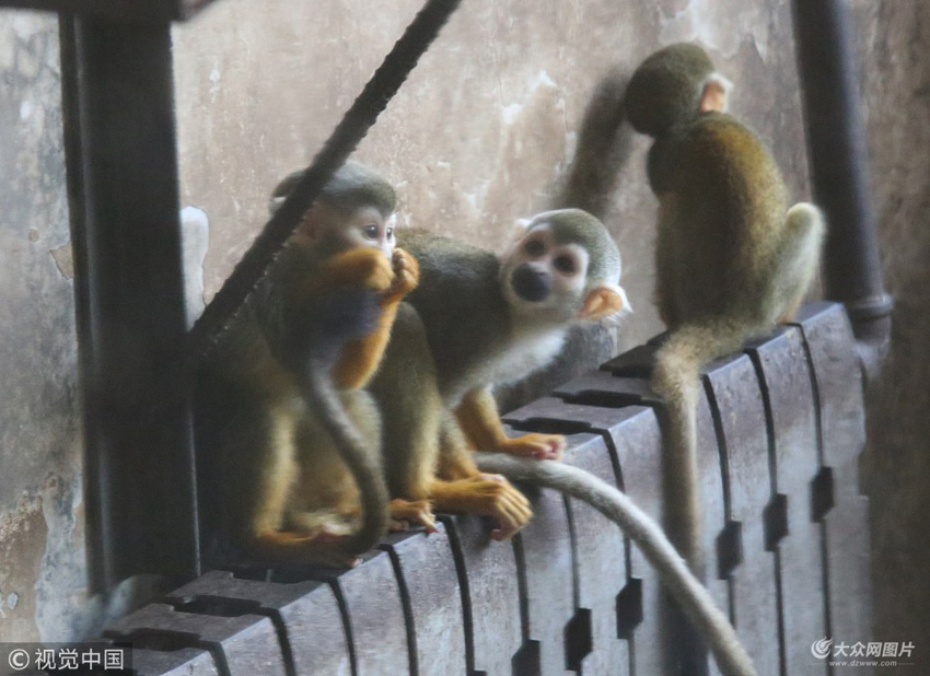 猴子們抱團趴在暖氣上取暖。