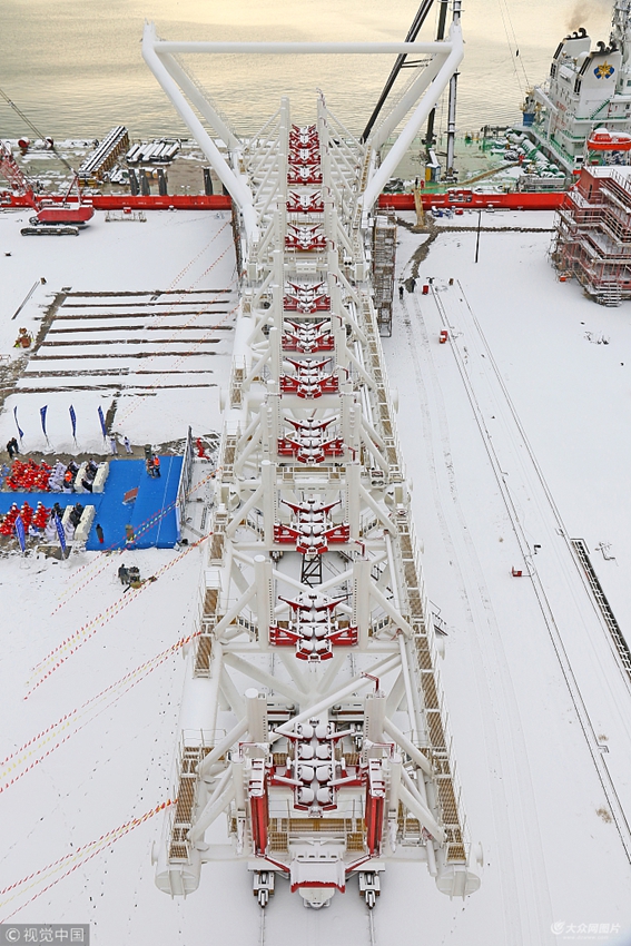 2017年12月12日,山東煙臺,3000米深水鋪管船托管架系統(tǒng)在煙臺打撈局船廠完工。