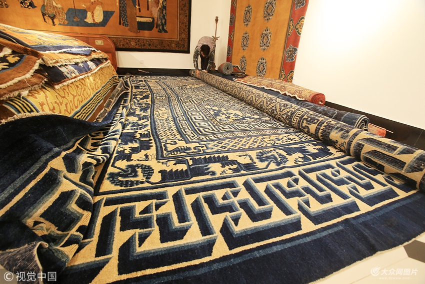 2017年12月26日,青島,錦地團壽字紋栽絨地毯 6.16m×5.52m 清晚期 寓意萬福萬壽吉祥綿亙。