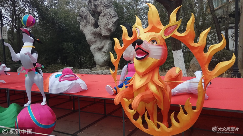 2018年1月17日,在山東濟南趵突泉景區內,各式各樣狗的造型成為第三十九屆趵突泉迎春花燈的主角。