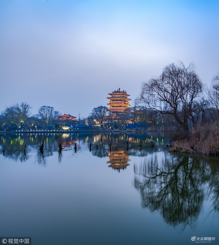 山東濟(jì)南,大明湖夜景。