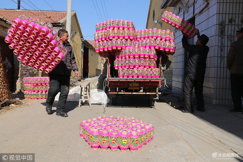 2018年2月4日,山東濱州,當地村民在加緊制作手工燈籠。