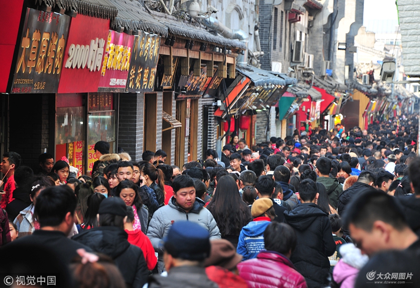 2018年2月22日,山東濟(jì)南。芙蓉街、泉城廣場、趵突泉等熱門景點(diǎn)吸引了眾多民眾前來游玩。