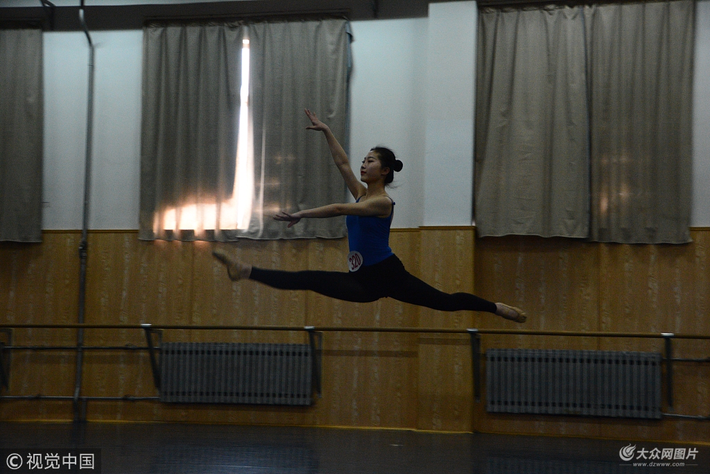2018年2月26日,濟南。山東藝術學院舞蹈表演專業(yè)校考進行復試階段,在候考廳,考生們在加緊訓練。