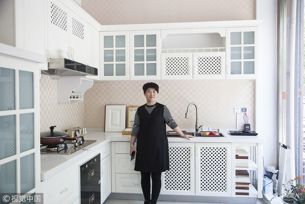 2018年4月25日,山東濱州。楊玉紅,46歲,櫥柜店?duì)I業(yè)員。楊玉紅一直做家具行業(yè)的營(yíng)業(yè)員已經(jīng)十多年,從各種家具到現(xiàn)在的櫥柜,她現(xiàn)在已經(jīng)算得上是一個(gè)家具專家。楊玉紅月薪3000-5000元。圖片作者:傅琨/視覺中國(guó)