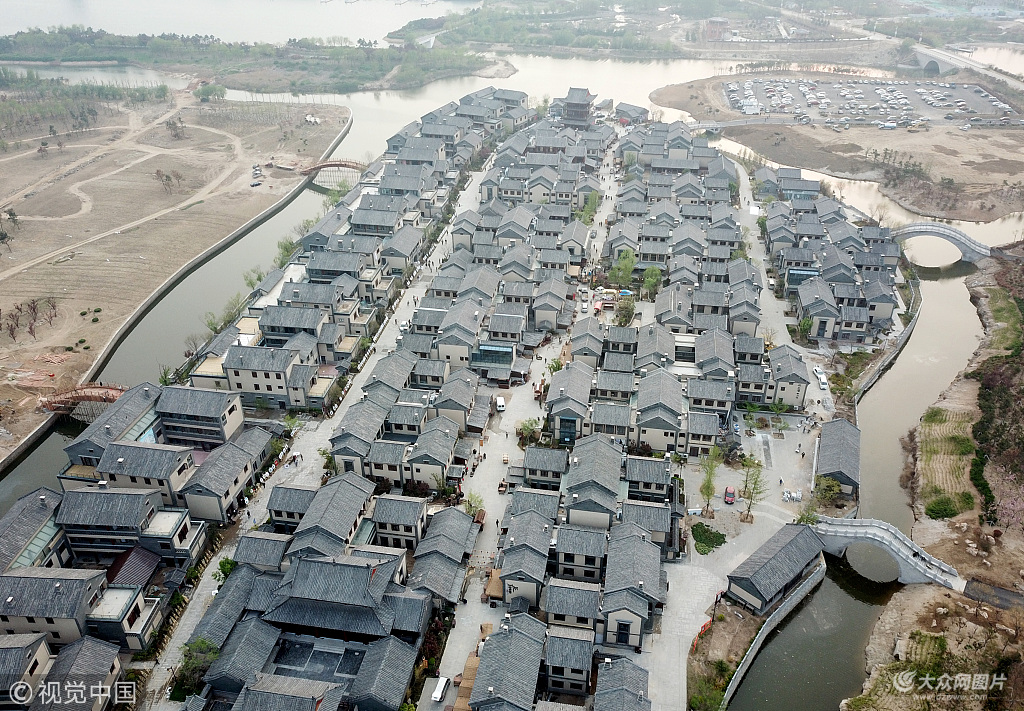 2018年04月26日,山東日照,航拍正在建設的東夷小鎮,這個被譽為中國離海最近、集民俗體驗和休閑觀光于一體的海濱旅游小鎮已進入最后的收尾階段,計劃于5月1日投入試運營。圖片作者:馬健/視覺中國