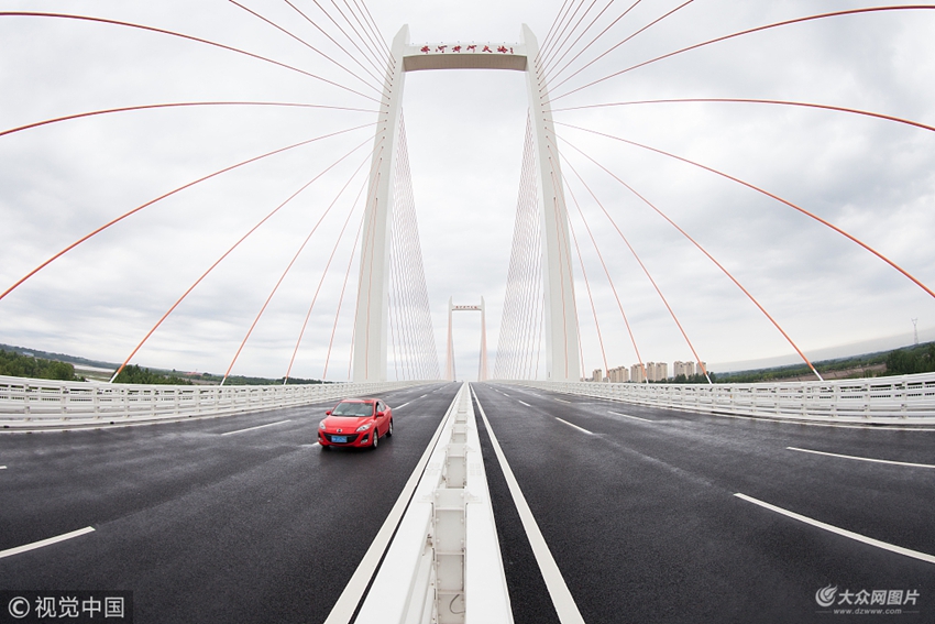 齊河黃河大橋是山東省、德州市重大基礎(chǔ)設(shè)施建設(shè)項目,由齊河縣人民政府投資12億元建設(shè)。大橋東起濟南市槐蔭區(qū)濟齊路,西岸止于齊河縣黃河大道與國道309交叉路口,全長3767.9米,主橋840米,橋路基寬35米,采用雙向六車道一級公路標準,并預(yù)留軌道交通通道。大橋為“H”型雙塔鋼混組合梁斜拉橋,主跨410米,左側(cè)塔高138米,右側(cè)塔高133.5米,分別各有32對鋼索,是目前所有黃河大橋中主跨最大的雙塔斜拉橋。