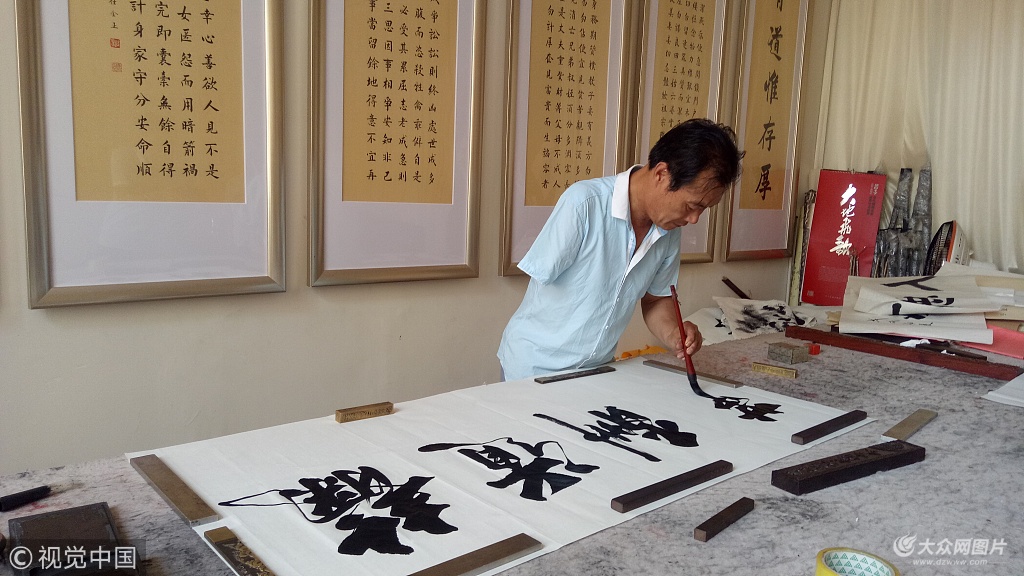 漢字藝術是為右手書寫而創造,左手書寫非常不便,一不小心就會寫反。仕金正強制自己去適應左手寫字,這個過程十分考驗耐性。很多追逐藝術的人終身窮困潦倒,對于肢體殘疾的仕金正來說,這條道路顯得格外艱辛。最開始,書法不能給他帶來收益,為了生活,他通過種地、開建材商店來養家糊口,所付出的努力是常人的幾倍。