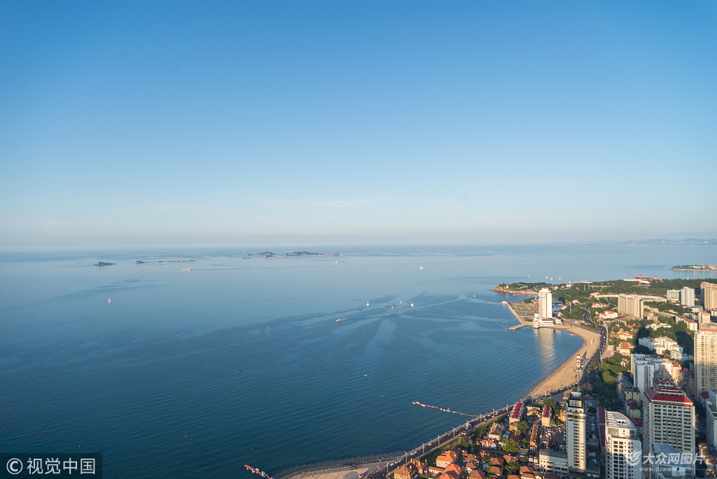 2018年6月11日,山東煙臺(tái),結(jié)束了連續(xù)陰雨大霧天氣,撥開(kāi)烏云露出了幾日不見(jiàn)的藍(lán)天,遠(yuǎn)處城市島嶼清晰可見(jiàn)。圖片作者:劉臣臣/視覺(jué)中國(guó)