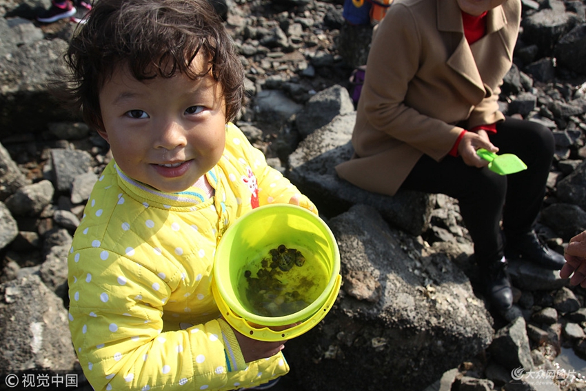 2018年11月26日,大批市民在青島膠州灣滄口海灘趕海。
