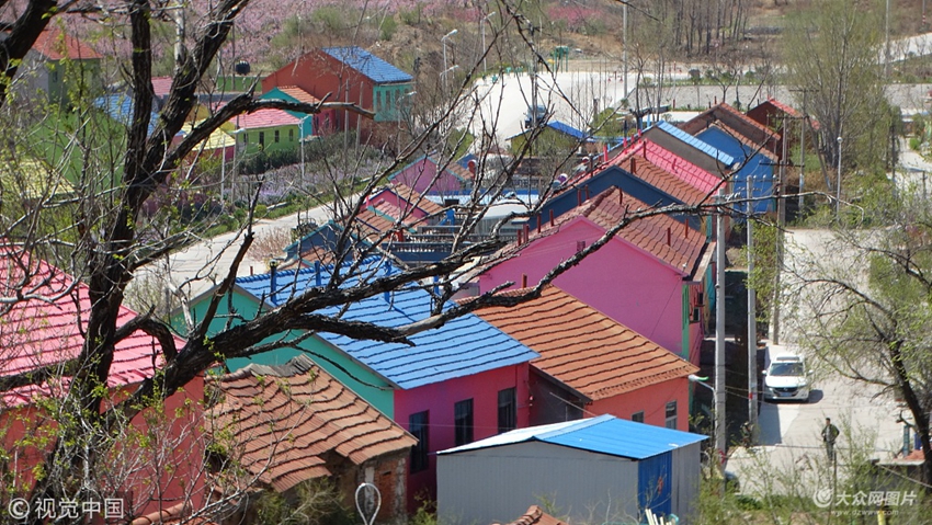 2018年4月,山東濰坊。春暖花開,中國安丘“桃花節”在安丘市輝渠鎮落鴉石村開幕。村莊的房屋粉刷成五顏六色,房前屋后花草繁盛,在春光中展示出美麗鄉村的勃勃生機。