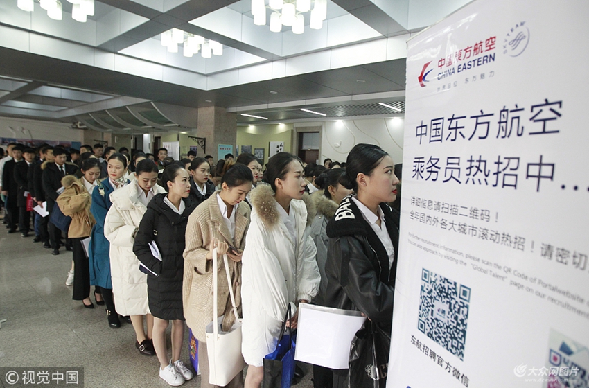 2018年11月29日,青島東航招聘空姐,吸引了上千名美女前來報名。