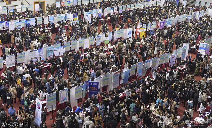 2018年11月29日,濟南,大學(xué)生參加就業(yè)“雙選會”找工作。
