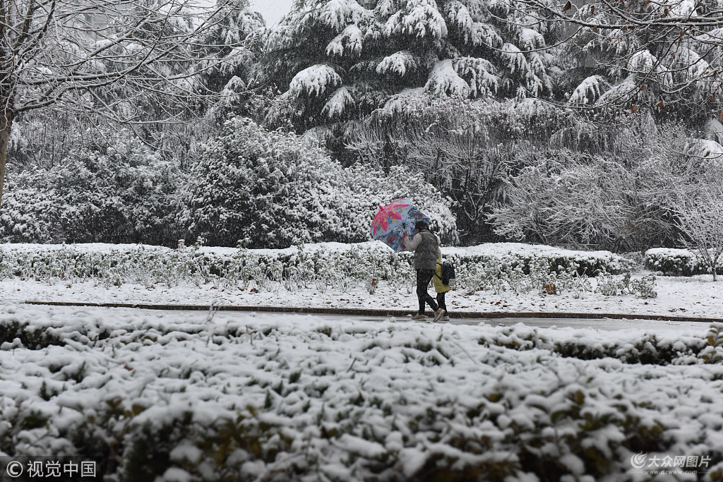 2018年12月5日,山東臨沂,在沂南縣街頭,行人穿行在漫天大雪里。