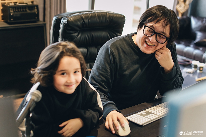2019年3月26日,山東日照,“小甜甜、師葭希、王一菲等等,這些孩子都成了小網紅,受到了網友們的喜愛。”石棟穎笑著說。石棟穎出生于一個小縣城,學習音樂的時間已經超過30年。畢業后他當了一名音樂老師,用新穎的教學方式激發同學們的創造力。他將學生的作品發布在網上贏得了很多網友的喜歡,意外讓不少學生走紅,培訓學校也被稱“網紅學校”。6歲的美國女孩Bella也來拜師,加入了這個有愛的大家庭,向石棟穎學唱英文歌。