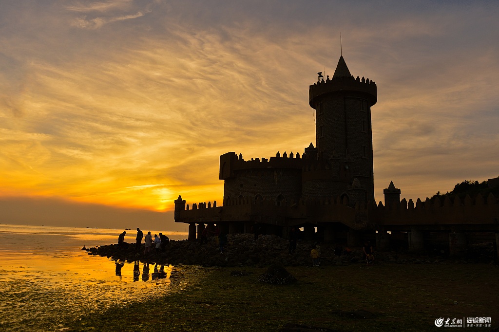 2019年5月18日,山東威海市一處海灘邊,古堡美如畫卷。