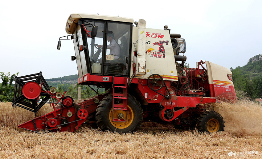 2019年5月30日,山東棗莊,市中區齊村鎮后良村麥田里,農機手操作機械收割小麥。眼下,全國夏糧主要作物小麥由南向北梯次成熟陸續進入收獲期。