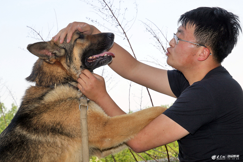 2019年5月28日,在山東省煙臺市公安局警犬訓練基地,訓導員與“無言的戰友”們刻苦訓練,親如家人。