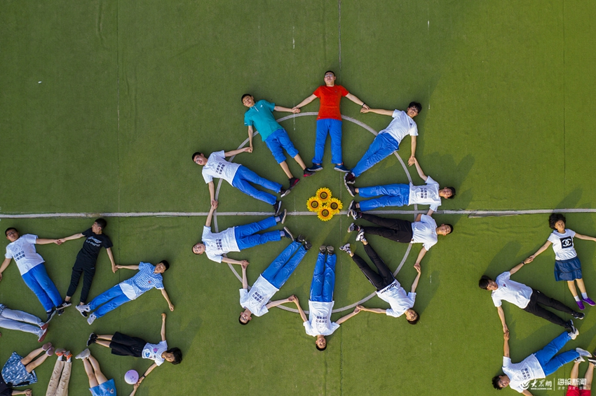 2019年6月4日,濟(jì)南,第二十中學(xué)即將畢業(yè)的中學(xué)生用各種造型拍攝畢業(yè)照,喜迎畢業(yè)季。同時(shí)距離中考6天倒計(jì)時(shí),用創(chuàng)意畢業(yè)照的形式緩解中考?jí)毫Γ鎰e三年初中好時(shí)光。