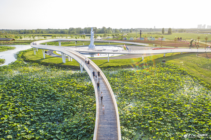 2019年6月9日,山東濱州,端午節假期最后一天,仍有不少游客在十里荷塘景區觀賞。十里荷塘是黃河灘區改建而成的免費城市休閑景區,每年夏天,滿池荷花競相綻放,吸引濱州市及周邊游客前來賞荷。今年景區增設了兩處彩色風車長廊,在初夏的微風中,數千只風車隨風轉動,為荷塘增加了別樣的色彩和樂趣。