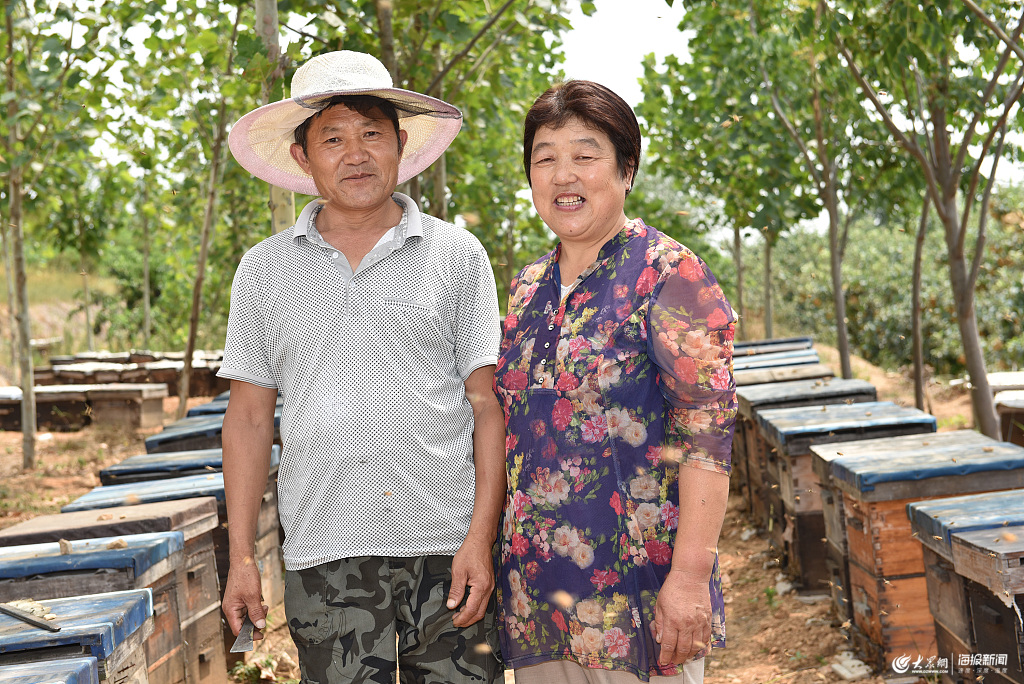 2019年6月30日,在山東省日照市三莊鎮(zhèn)吉洼村橫山前的一片山坡上,今年54歲的于衛(wèi)學介紹說,30多年來,他的蜜蜂從開始的30箱已發(fā)展到了現(xiàn)在的300多箱,自己也從年輕的帥小伙變成了現(xiàn)在的帥大叔。