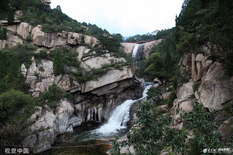 2019年8月14日,山東泰安,暴風雨過后,泰山雨量充沛,黑龍潭瀑布傾斜而下。圖片作者:劉培俊/視覺中國