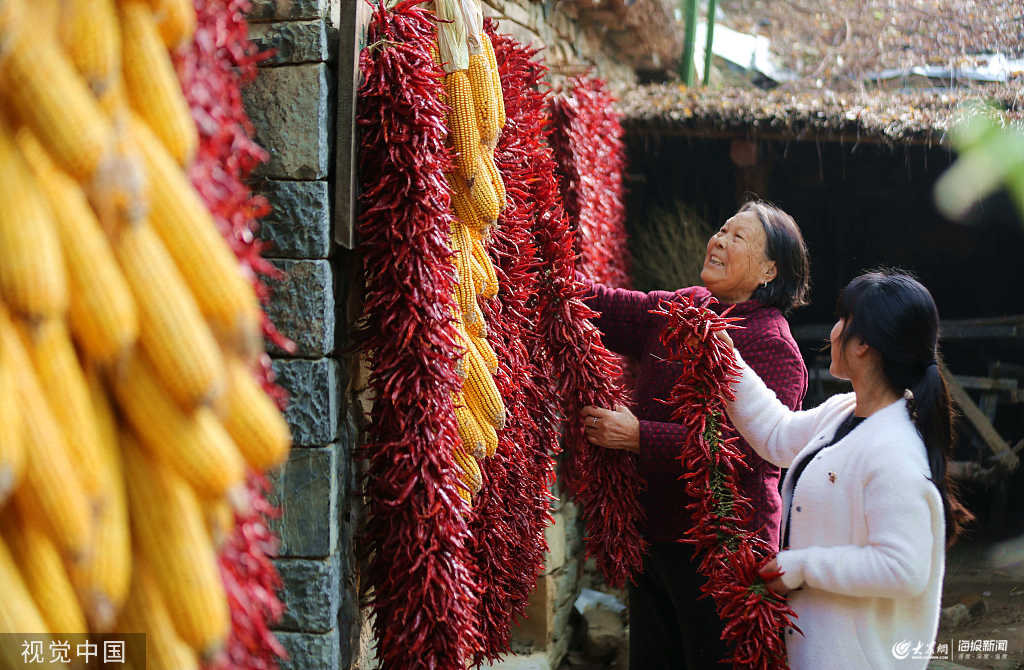 金秋時節,地處沂蒙山區腹地的山東省臨沂市沂南縣竹泉村農家屋檐下和場院里晾曬著稻谷、玉米、辣椒等五顏六色的農作物,豐收的喜悅撲面而來,到處呈現出一幅幅美麗的“曬秋圖”,吸引游客紛至沓來。