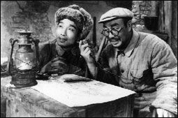 導演崔嵬在《老兵新傳》中飾戰場長(右)