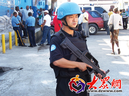 蘇建輝在海地執(zhí)行維和執(zhí)勤任務(wù)。